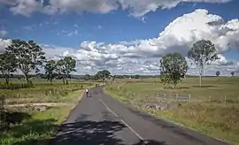 Barker Creek flows through the locality from the south-west to the north-east, and is eventually impounded by the Bjelke-Petersen Dam to create Lake Barambah in Moffatdale to the north-east.[7][8]
