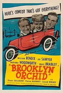 Brooklyn Orchid is a 1942 American comedy film directed by Kurt Neumann and written by Earle Snell and Clarence Marks that was one of Hal Roach's Streamliners. The film stars William Bendix, Joe Sawyer, Marjorie Woodworth, Grace Bradley, Richard "Skeets" Gallagher, Florine McKinney and Leonid Kinskey. The film was released on January 31, 1942, by United Artists.[1][2][3]