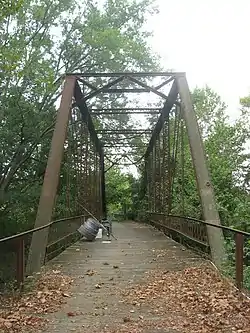 Brown County Bridge No. 36, also known as Hickory Hill Road Bridge and Wrightsman Bridge, is a historic Pratt through truss bridge located at Washington Township, Brown County, Indiana. It was built by the Pan-American Bridge Company in 1908. It consists of a 90 foot long span and 31 foot, 9 inch, span. It was closed to vehicular traffic in November 1990, but remains open to foot traffic on the Ten O'Clock Treaty Line Trail.[2]:5
