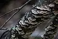 East Gippsland's Eucalyptus nitens forest biomass contains at least 700 (and possibly up to 2000) tonnes carbon per hectare ("green carbon") above ground.[6] Recovery of the carbon debt from clearing intact natural eucalypt forests through afforestation or reforestation takes more than 100 years.[7] Research into the age class structure of Brown Mountain's trees and the forest's carbon capacity is ongoing. 85% of the wood harvested in Victoria's forests is converted to woodchip (mostly for use in paper), sawdust and waste.