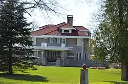 Browne-Rafert House, also known as the Rafert-Anderson House and Browne House, is a historic home located in Fortville, Hancock County, Indiana. It was built in 1914, and is a two-story, Arts and Crafts movement inspired dwelling constructed of Indiana limestone. It has a hipped roof with wide overhanging eaves. Also on the property are the contributing carriage house, small utility building originally used as an office, and perimeter fence, gate, and garden features.[2]: 4