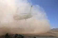 The CH-47 Chinook has had a relatively high frequency of brownout accidents. As of 2007, nine Chinooks were lost in action in Afghanistan, and at least two were caused by brownout, which likely played a role in several other incidents.[17] According to the Project on Government Oversight (POGO), 12 of 41 U.S. Army brownout accidents between 2002 and 2005 involved CH-47s. Data compiled by POGO from government sources show the Chinook flew 7 percent of all U.S. Army helicopter flight hours between 2003 and 2005 but accounted for 30 percent of all brownout-related accidents.[18]