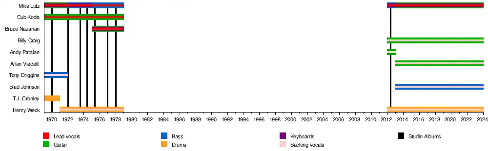 - Mike Lutz (1969–1979, 2012–present) - guitar, lead vocals, bass, keyboards