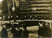 Leaders of major black organizations, such as the Constitution League, the National Association of Colored Women, and the Niagara Movement, tried to persuade the administration not to discharge the soldiers, but were unsuccessful.[6] From 1907 to 1908, the US Senate Military Affairs Committee investigated the Brownsville Affair, and the majority in March 1908 reached the same conclusion as Roosevelt. Senator Joseph B. Foraker of Ohio had lobbied for the investigation and filed a minority report in support of the soldiers' innocence. Another minority report by four Republicans concluded that the evidence was too inconclusive to support the discharges.[2] In September 1908, prominent educator and leader W. E. B. DuBois urged black people to register to vote and to remember their treatment by the Republican administration when it was time to vote for president.[6] DuBois instead endorsed Woodrow Wilson and his New Freedom platform. DuBois ultimately retracted the endorsement after the Wilson Administration's segregation of the federal bureaucracy and Wilson's own private screening praise for The Birth of a Nation.[7]