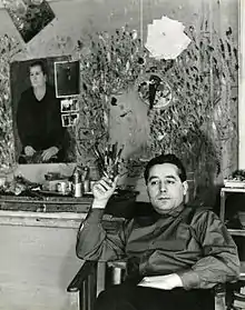 ![]() Bruno Cassinari in his studio in Vence photographed by Paolo Monti in 1958 | |