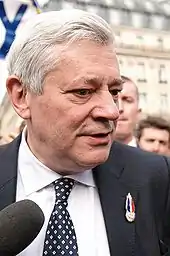 Bruno Gollnisch (French pronunciation: [bʁyno ɡɔlniʃ]; born 28 January 1950) is a French academic and politician, a member of the National Front (FN) far-right party. He was a member of the European Parliament and was chairman of the European Parliamentary group 'Identity, Tradition, Sovereignty' in 2007, which was dissolved in November 2007 following the defection of the Greater Romania Party. He was thereafter a Non-Inscrit. Gollnisch has also been the executive vice-president of the FN from 2007 to 2011. He was also a councillor of the Rhône-Alpes région of France. Because of his public comments, and his position in the National Front he is a controversial figure in France.