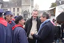 Le Maire talking with Jean-Louis Debré and his constituents in Évreux