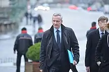 In May 2017, Le Maire was appointed by President Emmanuel Macron Minister of the Economy in the first Philippe government. In this capacity, he is supported by Budget Minister Gerald Darmanin.[17] Shortly after being appointed as the Minister of the Economy, Le Maire became a member of La République En Marche! following conflicting reports that he was excluded from The Republicans party.[18][19] Le Maire was able to win reelection in his constituency after beating National Front candidate, Fabienne Delacour. He was appointed Minister of the Economy and Finance in the second Philippe government on 19 June 2017.
