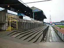 The upper tier is known as the family stand with a small section to the south known as the 'A' Stand, which houses school children. The full extent of the upper tier is seated and is the location of the stadium's most recent improvements, with upgraded seating bought from Darlington in 2006 during the club's move.[8]