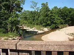 Brush Creek looking north from Missouri route 14 bridge. Confluence of Little Brush Creek (right) and Brush Creek (left)
