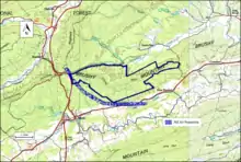 The boundary of the wildland as determined by the Wilderness Society is shown in the adjacent map.[1] Additional roads and trails in the vicinity are given on National Geographic Maps 787 (Blacksburg, New River Valley, Trails Illustrated Hiking Maps, 787).[3] A great variety of information, including topographic maps, aerial views, satellite data and weather information, is obtained by selecting the link with the wild land's coordinates in the upper right of this page.