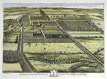 Brympton d'Evercy from the south around 1722 by Jan Kip and Leonard Knyff.