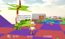 Bubsy 3D is highly derivative of Bubsy 3D, a 1996 platform game for the PlayStation, with a primitive graphical style overtly meant to mimic the low-polygon visuals of its respective inspirer. The player controls Bubsy, an orange bobcat, as he explores and progresses through several platforming levels. Controls are made to simulate those of Bubsy 3D's,[10] which have gained infamy for being considered by many as poorly-implemented; Bubsy is able to walk and jump, and can glide in order to fall more slowly and travel long distances mid-air.[11] Several collectibles are scattered throughout the game, of which have no effect on gameplay.[4] The player can also enter various cheat codes from the game's title screen.[9]
