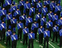 The official corps nickname is "The Balance in Blue" because of the variety of musical styles it has presented over the years, although the corps has programmed mostly classical choices since the late 1990s.[7] The official corps symbol is a ship's wheel in blue with a falchion laid horizontal with the name of the corps.[8]