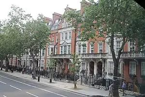 In the 18th century, the road was known as Chelsea Road and was often frequented by highwaymen. A reward of £10 was offered in 1752 for the capture of one of the worst offenders. Towards the southern end, Victoria Station was opened in 1866 and the adjacent Victoria Coach Station was built in 1932 in the Art Deco style.[1] From 1890 to 1956 the street had a parish church in the form of St Philip's Church, Buckingham Palace Road.