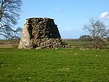 Buckton consists of a farm and a few cottages. Buckton is the site of a medieval deserted village, which was first recorded in 1560, but had shrunk in size by the mid-18th century.[2] The farmhouse dates from the 18th century and has a walled garden.[3] The remains of a late medieval dovecote (Grade II listed) are located to the north of the farm.[4] Buckton Burn flows close to the settlement.[5]