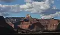 Buddha Temple is a 7,212-foot-elevation (2,198-meter) summit located in the Grand Canyon, in Coconino County of northern Arizona, in the Southwestern United States.[3] It is situated 6.5 miles (10.5 km) due north of the Mather Point overlook on the canyon's South Rim, and four miles southwest of the North Rim's Bright Angel Point. Topographic relief is significant as it rises over 3,800 feet (1,200 meters) in two miles above Bright Angel Canyon to the east, and 3,000 feet in less than one mile above Haunted Canyon to the immediate west. Its neighbors include Manu Temple 1.5 miles (2.4 km) to the northeast, Isis Temple 2.3 miles to the southwest, Zoroaster Temple 3.8 miles to the southeast, and Deva Temple, 3.5 miles to the east. Buddha Temple was named by Henry Gannett, a geographer for Clarence Dutton, in following Dutton's practice of naming features in the Grand Canyon after mythological deities, in this case Buddha.[4][5] This geographical feature's name was officially adopted in 1906 by the U.S. Board on Geographic Names.[3] The first ascent of this butte was made in 1973 by Bruce Grubbs, Chauncey Parker, and Mark Brown via the Northwest Arete.[6] According to the Köppen climate classification system, Buddha Temple is located in a Cold semi-arid climate zone.[7]