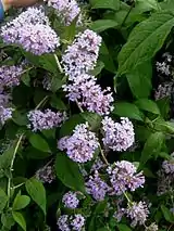 Buddleja delavayi is a Chinese species discovered by Forrest in the Tali Range above Dali (2000 – 2500 m elevation), Yunnan, in 1910;[1] it is also found in Xizang (Tibet).[2] The species was named for l'Abbé Delavay, the French missionary and plant collector, by Gagnepain in 1912.[2] The shrub is of interest to the botanist because of its unique (within the genus) resting buds and the different types of inflorescence produced through the year.[1]
