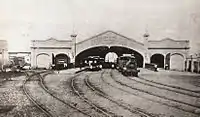 Workshops functioned between Corrientes, Paso, Tucumán and Pueyrredón until 1887. The line then followed a route parallel to present-day Bartolomé Mitre up to the triangle formed by the current streets Medrano, Pelufo and Lezica, where the (also wooden) unmanned station Almagro was located. This area only contained a few scattered farmhouses and ceased to function in 1887.