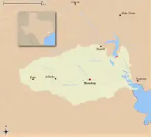 Along with Galveston Island and Galveston Bay itself, Buffalo Bayou was one of the focal points for early Anglo-American settlement in early Texas, first part of the Spanish Empire and then part of Mexico. Early communities began to appear at the beginning of the 19th century, including Lynchburg, Harrisburg, and Rightor's Point (modern Morgan's Point) in the 1820s.[7][8][9] The bayou became important in Texas history when the final battle of the Texas Revolution was fought along its banks where it merges with the San Jacinto River.[10]