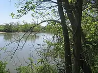 In August 2017, extensive rainfall from Hurricane Harvey brought the bayou to record high levels, shattering previous flood crests by several feet.[24] Addicks and Barker reservoirs were filled to capacity, forcing the U.S. Army Corps of Engineers to initiate controlled releases of 16,000 cubic feet per second (450 m3/s) to prevent catastrophic uncontrolled releases and protect the structural integrity of the dams.[25][26] Despite these efforts, uncontrolled releases did occur around the spillway at the northern end of Addicks Reservoir for the first time in the structure's history.[26]