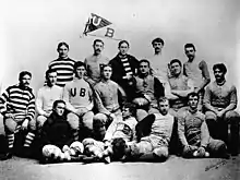 In 1894, UB established an athletics association and fourteen UB Medical students formed the first UB football team.[4] By 1896, they were a local force in Western New York football playing collegiate and club teams and finishing the season with an impressive 9–1–2 record.[5] In 1897, C. W. Dibble coached UB to a perfect 7–0–0 record beating Syracuse twice.[6] In 1899, Bemus Pierce coached UB to a 6–0 record.[7] This likely made Pierce the first American Indian head coach in college football.[8][9] In 1900, Buffalo beat Penn State 10–0.[10] In 1901, former player James B. "Turk" Gordon coached the UB team to a 4–2 record.[11] In 1903, Ray Turnbull led the UB team to a 3–3 record.[12] After the 1903 season, UB would not again put a team on the field until 1915.[13]