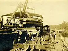 On October 11, 1889, the first post office was opened in Buffalo City. According to National Archive records, Charles A. Whallou delivered the mail to citizens of the town. Over the next decade, the forests surrounding Buffalo City were heavily depleted. The Buffalo Timber Company closed their operations and the post office was shut down in 1903. In 1907, the Dare Company purchased the forest and resumed logging operations. The post office was reopened on February 29, 1908. The town’s name was changed to Daresville, although the post office and citizens still used the Buffalo City title. The town's logging industry prospered throughout the 1910s and early 1920s. There were approximately 100 miles (160 km) of railroad tracks built throughout the logging area. Mules carried felled trees from lumber camps to the nearest railroad track. Freight cars then carried the wood to a transfer station at Milltail Creek and the barges took the lumber to sawmills in Elizabeth City.[1]