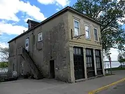 The Building at 101 North Riverview Street is a historic commercial building located in Bellevue, Iowa, United States. It is one of over 217 limestone structures in Jackson County from the mid-19th century, of which 20 are commercial buildings. The two-floor structure was built around 1850 along the levee. Because the property slopes toward the Mississippi River, it appears to be a four-story building on the riverside. It was built to house a retail establishment, but its original use has not been determined.[2] By 1885 it housed a dry goods store, and by 1894 it housed a hardware store and implement dealership, which was located here for decades. The rectangular plan structure is three bays wide, and it has a stone storefront. It was given a light coating of stucco and scored giving it an ashlar appearance. The second-floor windows have simple hoodmolds above them, while the rest of the windows have stone lintels. What differentiates this building from the others is that it is a freestanding commercial structure, capped with a hip roof.[2] The building was listed on the National Register of Historic Places in 1991.[1]