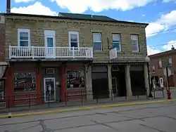 The Building at 130–132 North Riverview Street is a historic commercial building located in Bellevue, Iowa, United States. It is one of over 217 limestone structures in Jackson County from the mid-19th century, of which 20 are commercial buildings. The 2½-story structure was built around 1855 to house retail establishments, which have included dry goods, a grocery, clothing and footwear stores, and a tavern. The double storefront building features three bays on both sides. The stone blocks used in its construction vary somewhat in shape and size, and they were laid in courses. It also features dressed stone lintels. The storefronts were altered in the late 19th and early 20th centuries, but they retain their original limestone piers. What differentiates this building from the others is the gable roof.[2] The second floor balcony on the south half of the building is a recent addition. It storefront has also been altered again in more recent years. The building was listed on the National Register of Historic Places in 1991.[1]
