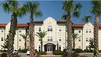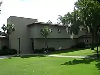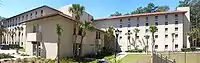 Buildings on the Main Campus are modeled in Spanish Mission architecture using terra stucco construction and terra cotta roofs, and are surrounded by picturesque landscaping featuring palms, pines, azaleas, camelias and a mix of other beautiful flowering plants. It features an attractive pedestrian mall of inlaid brick and well-designed seating areas.[2] The Rea and Lillian Steele North Campus is home to the Harley Langdale Jr. School of Business and Air Force ROTC Detachment 172, and is less than a mile north of VSU's main campus. The buildings follow a red brick modified form of Georgian architecture.[3]