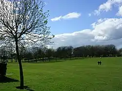 In 1590, victims of the plague were buried in a pit in Hart Hill Meadow, which had been bought by the local authorities.[1][2] Hart Hill is one of the areas that makes up the modern park, and is found near the junction of Eccles Old Road and Weaste Lane.