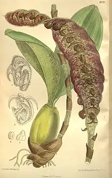 Bulbophyllum purpureorhachis is a species of orchid in the genus Bulbophyllum.