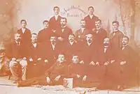 Students from 1st alumni of the Edirne Bulgarian men high school "Dr Peter Beron", together with their teachers. 1898–1899.