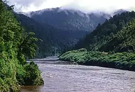 The Buller River (Māori: Kawatiri) is a river in the South Island of New Zealand.[1] The Buller has the highest flow of any river in the country during floods,[2] though it is only the 13th longest river; it runs for 177 km (110 mi) from Lake Rotoiti through the Buller Gorge and into the Tasman Sea near the town of Westport.[3] A saddle at 710 m (2,330 ft) separates the Buller from the Motupiko River and that is divided from the Wairau River by a 695 m (2,280 ft) saddle, both aligned along the Alpine Fault, as is the top of the Buller valley.[4]