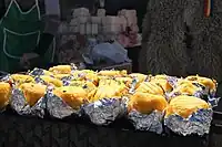 Bulz,[1] also called urs de mămăligă, is a Romanian dish prepared by roasting polenta (mămăligă) and cheese in an oven. Bulz is often eaten with sour cream.