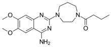 Bunazosin (INN) is an α1-adrenergic receptor antagonist.[1] Bunazosin was initially developed to treat benign prostatic hyperplasia (BPH). It has been approved in Japan in a topical form to treat glaucoma. The mechanism of action is a reduction of aqueous outflow through the uveoscleral pathway resulting in lowering the intraocular pressure. It also may act to improve blood flow to the ocular nerve. Systemic Alpha-1 adrenergic receptor antagonists have been implicated in Intraoperative Floppy Iris Syndrome (IFIS). Bunazosin potentially could have the same effect but there has been no research to substantiate this as a risk for cataract surgery.