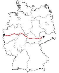 Between Eisenach and Erfurt the B 7 follows the path of the former Via Regia. The original plan marked Dresden as he eastern terminus, however this portion was completed during the Third Reich and called the Bundesstraße 173.