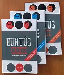 Buntús Cainte (Irish pronunciation: [bˠʊn̪ˠˌt̪ˠuːsˠ ˈkan̠ʲtʲə], lit. 'rudiments of speech') was a book series and an Irish-language learning TV programme, written by Tomás Ó Domhnalláin in the mid-1960s, illustrated by William Bolger, and first published in a three volume series by the Stationery Office, Dublin, Ireland, in 1967. It was the brainchild of Franciscan priest Colmán Ó hUallacháin.[1] It was re-printed eight times between 1974 and 1999 by the Stationery Office and since 2002, it has been re-printed seven times by An Gúm. The more recent re-prints are accompanied by a CD. Copyright is now held by Foras na Gaeilge.