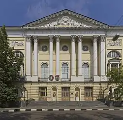 The main building of the hospital, which has survived to this day, was built in 1798–1802 according to the project of the architect Ivan Egotov[6] In 1756 it was expanded to 1000 seats. From 1707 to 1739, the hospital had three departments, for patients with internal, infectious and external diseases. In 1737–1757, a department for venereal patients, obstetric and surgical departments were opened. There were special rooms for performing operations and an anatomical room where autopsies of the dead were performed. In 1756, the country's first psychiatric department was opened at the hospital. Subsequently, other departments were created in it.[7]