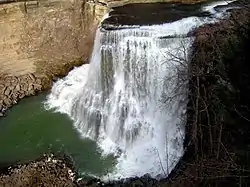 Burgess Falls State Park is a state park and state natural area in Putnam County and White County, Tennessee, located in the southeastern United States. The park is situated around a steep gorge in which the Falling Water River drops 250 feet (76 m) in elevation in less than a mile, culminating in a 136-foot (41 m) cataract waterfall.