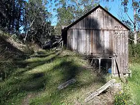 The Mills Barn, an English-style bank barn beside Mills Creek, is maintained but not restored. It is the only building of this type in California. The foundation of the barn and other buildings, including an un-reinforced arched stone bridge, rely on Italian masonry techniques dating back to Roman times. The barn was originally 200 feet (60 m) in length and could house 100 dairy cows.[2]