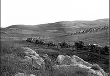 Three weeks later, 10 June, the steepest section was opened to vehicles, though they needed assistance from tractors to get up it. The road allowed passage of a convoy without leaving the vehicles on June 10, in time for the UN-imposed cease fire, but it required repair as vehicular passage opened new pot holes. The road was finally completed on June 14, and water and fuel pipes were laid alongside it.[2][3] Amos Horev, later President of Technion, was an Operations Officer, and was instrumental in creating the road.[4][5] By the end of June the usual nightly convoy delivered 100 tons of supplies a night.[6] Harry Levin, in his diary entry for 7 June, wrote that 12 tons a night were getting through and he estimated that the city needed 17 tons daily. On 28 July he noted that during the first truce, 11 June to 8 July, 8,000 truckloads arrived.[7] This remained the sole supply route for several months, until the opening of the Valor Road (Kvish Hagevurah).