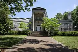 Major 19th-century buildings in the historic park include the Balch House, originally built in 1887 near Harvest; the Chandler House, a dogtrot house from Lester in Limestone County; an 1884 church that originally stood in downtown Madison; the Meals House, an 1845 cabin from near Lester; the Smith-Williams House, an 1868 marriage of two 1840s structures originally from McKay Hollow at the foot of Monte Sano; and an 1890s barn from near Minor Hill, Tennessee.[3] The museum also features two buildings that are listed on the National Register of Historic Places: the Burritt Mansion, and the Joel Eddins House.[4] Non-historic structures include a welcome center, administrative building, a replica of a four-room Rosenwald school, and an events center designed to look like the demolished Hotel Monte Sano.