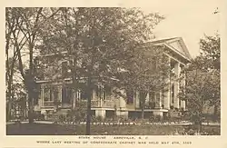 The Burt-Stark Mansion, also known as Armistead Burt House, in Abbeville, South Carolina was the site of the last Council of War of cabinet members of the Confederate government. On May 2, 1865, Jefferson Davis, hoping to continue the struggle, met unanimous opposition and realized the Confederate independence cause was lost.
