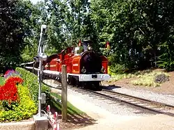 The Busch Gardens Railway is a 3 ft (914 mm) narrow-gauge amusement park railroad attraction located within Busch Gardens Williamsburg amusement park in Williamsburg, Virginia. Opened in 1975, the railway is 1.5 miles (2.4 km) long, and has stations in the Heatherdowns, Festa Italia, and New France sections of the park. It features three trains pulled by 4-4-0 steam locomotives manufactured by Crown Metal Products.[1]