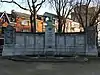 ![]() | Monument at Prince Avenue in Auderghem | Brussels | 1930[19] | 2020 | This monument on Prince Square (French: Square du Souverain) at the Prince Avenue (Dutch: Vorstlaan, French: Boulevard du Souverain) featured a bust of Leopold II, surrounded by several other stone art works and a bilingual plaque. The bust was vandalised and knocked down, and subsequently removed by the municipality for restoration on 12 June 2020. Mayor Didier Gosuin (DéFI) condemned the toppling, saying that although a 'recontextualisation of colonial heritage' was a good cause, this should happen democratically in consultation with others. A few days earlier, the municipality had already erased part of the plaque's text which thanked 'those who brought civilisation to Congo'.[20] |