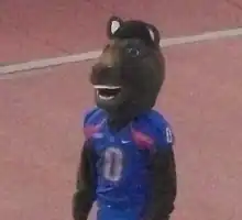 The mascot Buster Bronco during a game in 2010, wearing his jersey (#0).