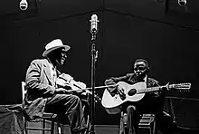 Butch Cage (left) with Willie B. Thomas live at the Newport Music Festival in 1960.