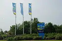 During World War II the Admiralty, who had already taken over his camp at Filey, asked Billy Butlin to construct two new camps; one in North Wales and the other in Scotland. Butlin found 150 acres of farm land on the Llŷn Peninsula in Wales.[1] The camp opened in 1940 as HMS ''Glendower'', an overflow training camp to HMS Royal Establishment.[2] The Admiralty contracted with Butlin's to extend the camp in 1942.[2] In 1946, after the war, Butlin took back ownership of the camp from the Admiralty and Butlins Pwllheli was opened to the public after some reconstruction work. The holiday camp expanded during the 1950s and 1960s with additional chalet lines and facilities. At the peak in the late 1960s it could accommodate 12,000 campers, serviced by 1,500 staff.[3] On 9 August 1963 Her Majesty, Queen Elizabeth II and His Royal Highness The Duke of Edinburgh paid an official visit to the holiday camp.[4]