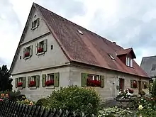 Two-storey byre-dwellings with stone walled ground floors occurred in the northeast of Baden-Württemberg in the 15th century. They were described as Pastor Mayer houses (Pfarrer-Mayer-Häuser).[3]